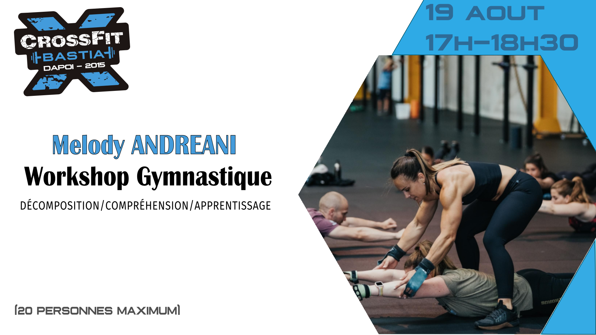 Nous avons le plaisir de vous proposez de participer au WorkShop Gymnastique de Melody ANDREANI le lundi 19 aout de 17H à 18H30.