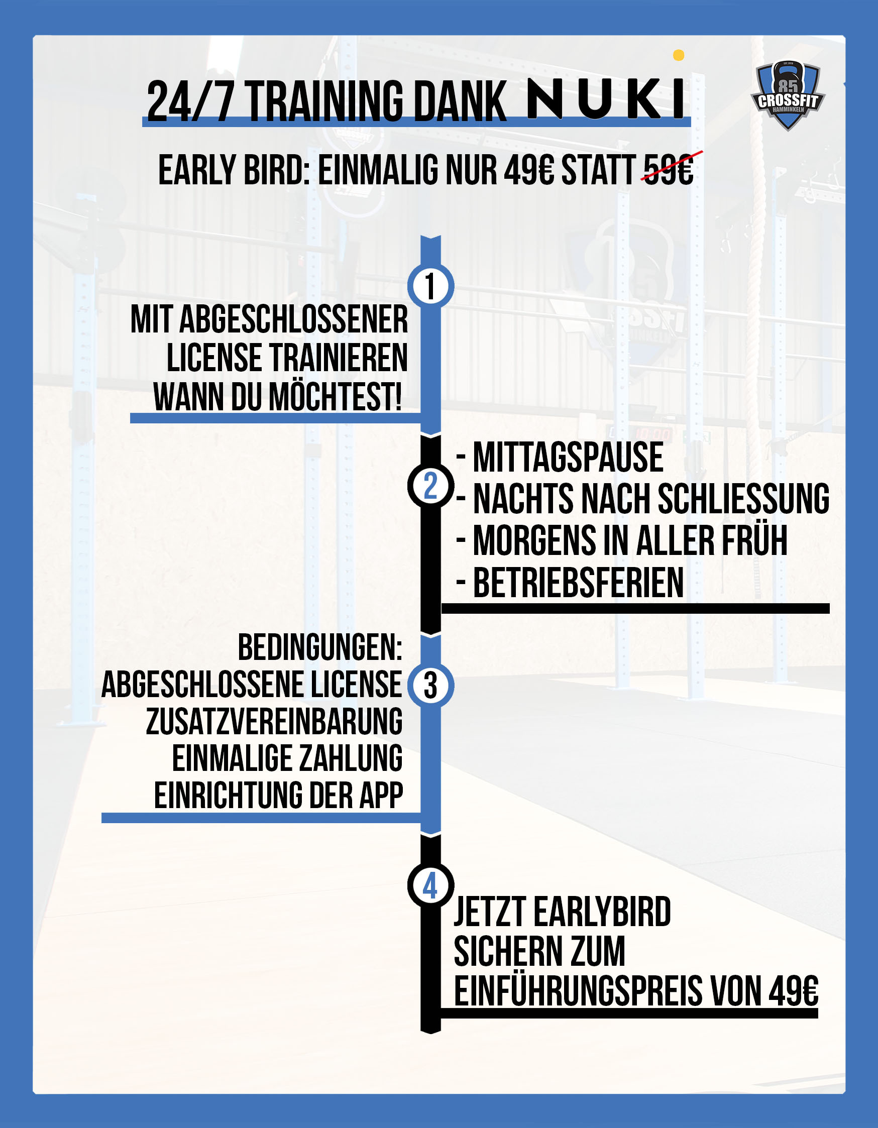 Egal ob am Wochenende, Feiertagen oder Betriebsferien... Hol dir DEINE Freiheit zu trainieren wann du möchtest. Ab sofort kannst du deine Membership erweitern lassen.