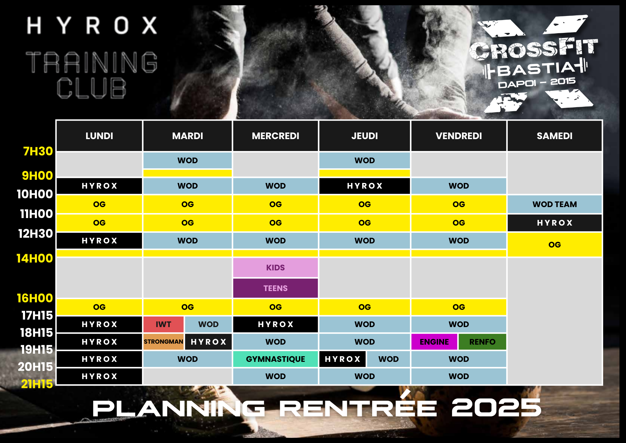 ➕ Renforcement musculaire, puissance, travail fonctionnel inspiré des épreuves HYROX.