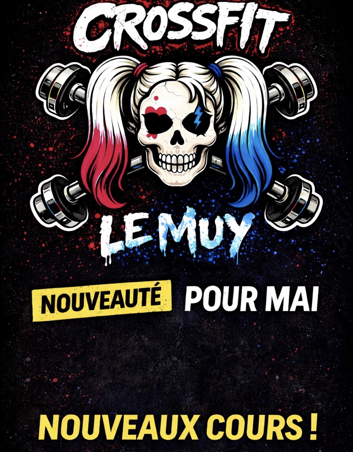 Salut la team, en mai du changement !!!!!                                                                Des nouveaux horaires arrivent                                                                                     des cours à 9h le lundi/ mardi/ vendredi et samedi                                                   des cours à 20h30 le lundi et mardi                                                                            Et comme vous l'avez demandé nous ouvrons le dimanche matin de 10h à 12h          Nous allons vous proposer des nouveaux cours                                                          HYBRID (version HYROX) un mélange de cardio et de force accessible a tous sans mouvements compliqués.                                                                                              PILATE  un mélange de mobilité et de renforcement des muscles profond adapté a tous