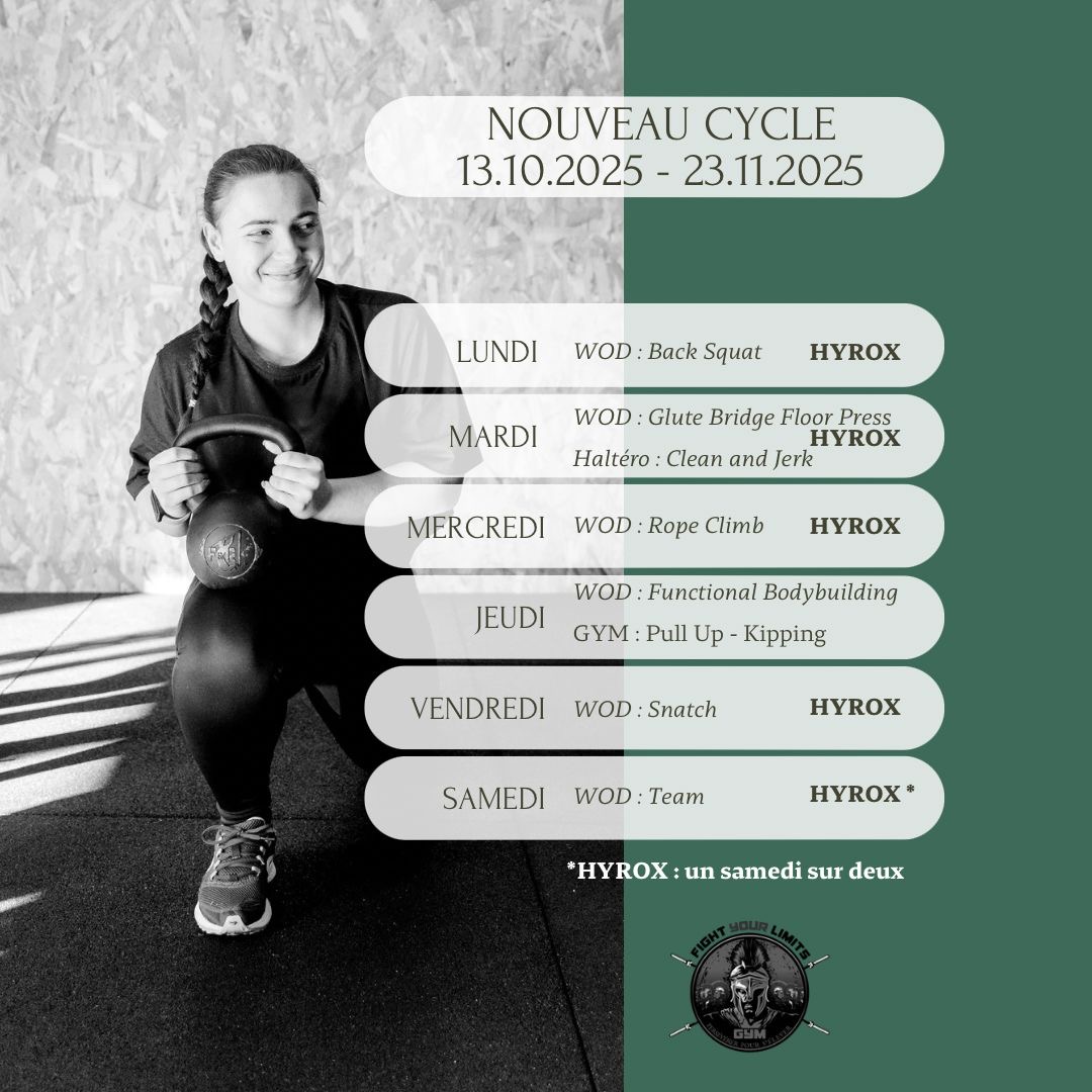 🗓 Du 13 octobre au 23 novembre, place à un cycle explosif de 6 semaines conçu pour te faire évoluer dans tous les domaines de la préparation physique.