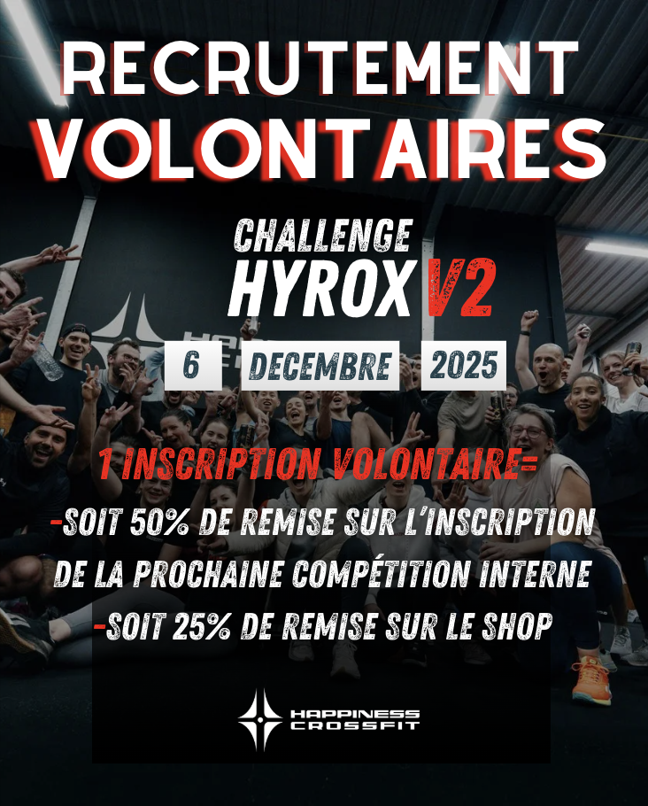 Le Challenge HYROX V2 arrive le 6 DÉCEMBRE 2025 et pour que cet événement soit une réussite, on cherche des VOLONTAIRES/JUGES !