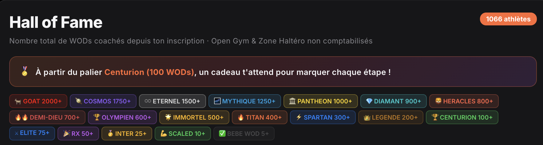 Chaque WOD compte et te fait progresser dans des niveaux :