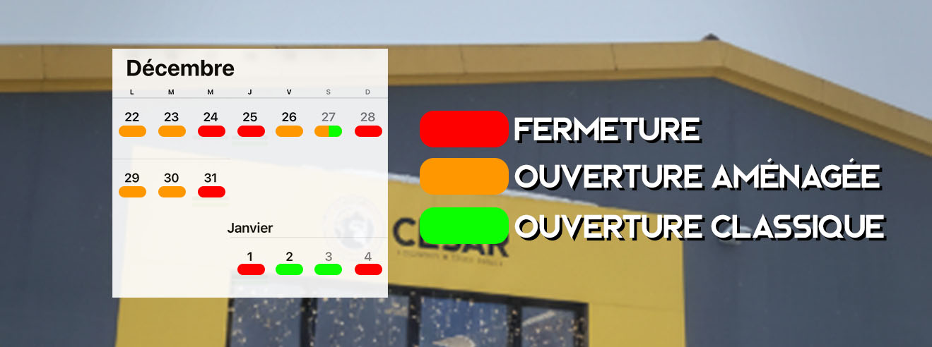 Voici le planning que nous utiliserons pendant la période des vacances de fin d'année :