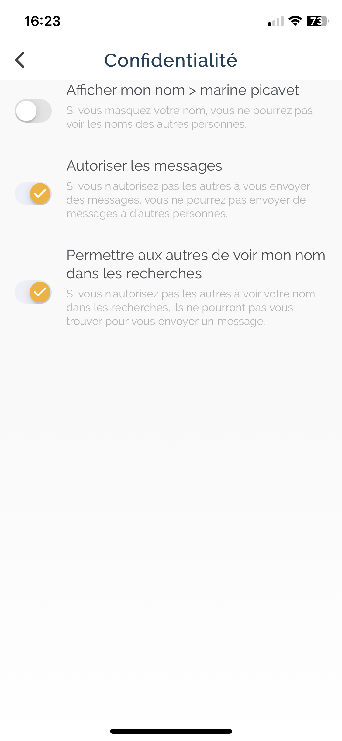 Pour ne pas permettre aux autres de voir vos inscriptions vous devez ne pas avoir sélectionné "Afficher mon nom" comme ci dessous.